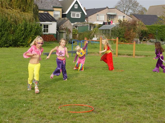 verkleedfeestje krijgt u een kist vol attributen voor 8 kinderen.