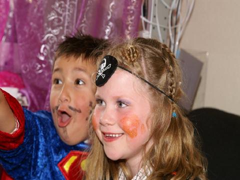 verkleedfeestje krijgt u een kist vol attributen voor 8 kinderen.