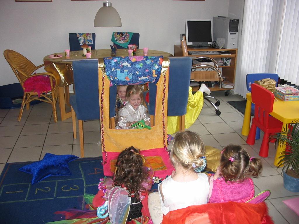 Het nieuwste feestje wat er is. En de naam zegt het al. Welk kind kan er nog geen genoeg krijgen van al die mooie sprookjes. Bij dit feest heeft u de mogelijkheid om zelf aan te geven welke kleding u erbij wilt. Bijvoorbeeld: Roodkapje, Belle en het beest, Sneeuwwitje, prinsessen, elfjes enz. Maar natuurlijk ook ridders, draken, tovenaars enz. De kist bevat attributen om een sprookjestent van uw parasol te maken, spelletjes en vele kroontjes en kettingen. De attributen die erbij zitten, zijn naar aanleiding van de kledingkeuze die u heeft gemaakt. Een fantasierijk feest.Klik hier voor informatie of reservering.
